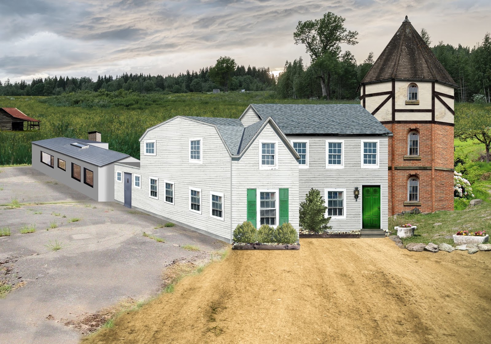 Here’s my mock-up of the farmhouse where Caleb, Jesse, and Wynter move at the start of Lost Melodies, pieced together from Pixabay images. I warned you it was ugly! Click to enlarge.