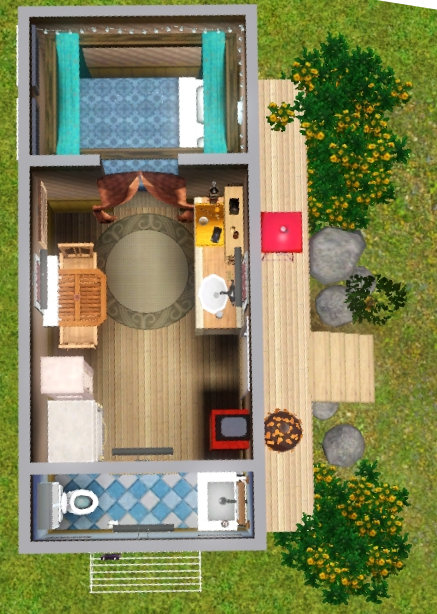 The Sims doesn’t have the means to make an actual caravan, so this is more of a shack. Imagine it with curved corners and appropriate doors and windows…
