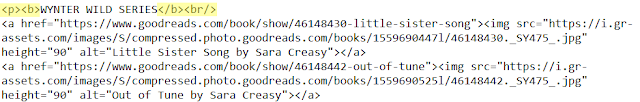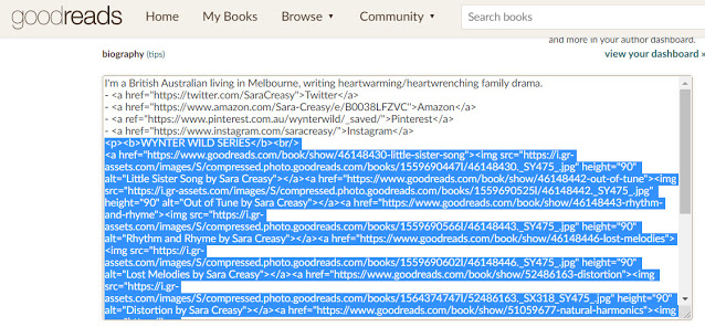 I’ve already written a short bio, along with links to social media. My book covers are going to appear below that.Copy and paste the block of code from your text editor/template. Here I’ve pasted all ten of my books (highlighted blue):