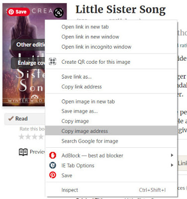 To get the address for the book cover image URL, right-click on the book cover from that same page and select “Copy image address” (Chrome) or “Copy image location” (Firefox).