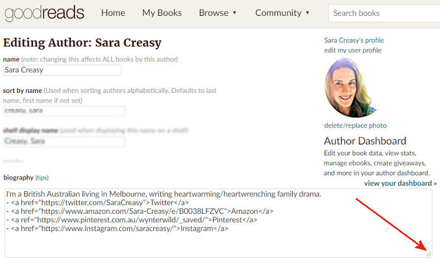 If you do prefer to type your code from scratch, I still suggest using a text editor (Notepad, Word, etc.) and saving as you go, rather than typing directly into the Goodreads bio page.