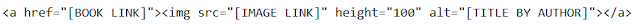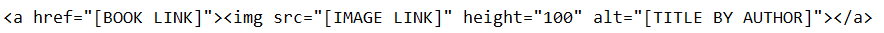 Everything in [square brackets] (including the brackets themselves) needs to be replaced for each book. All the other parts of the code, such as angled brackets and quote marks, must be included.