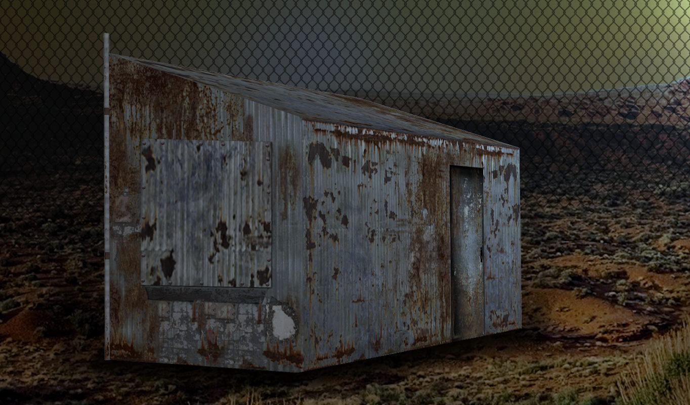 It’s your basic metal gardening shed – in very poor condition – like this (shown in situ):