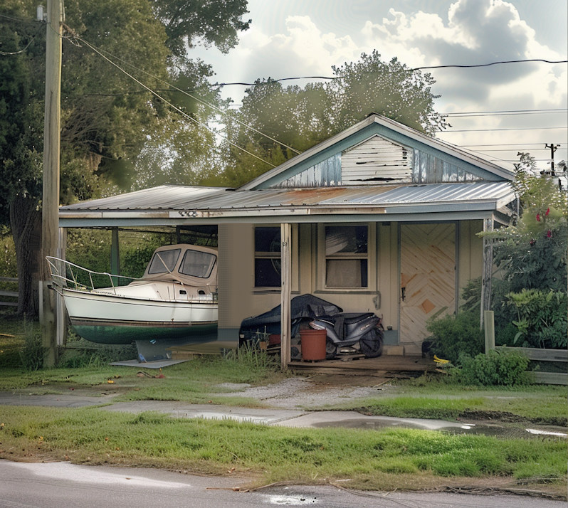In late 2010 when Caleb was assigned to the Coast Guard base in Seattle and Jesse (16) was a high school junior, Caleb threw Harry out of the house. Harry moved to this tiny house in Everett, where he lives when the series starts. He keeps his boat in the lean-to.